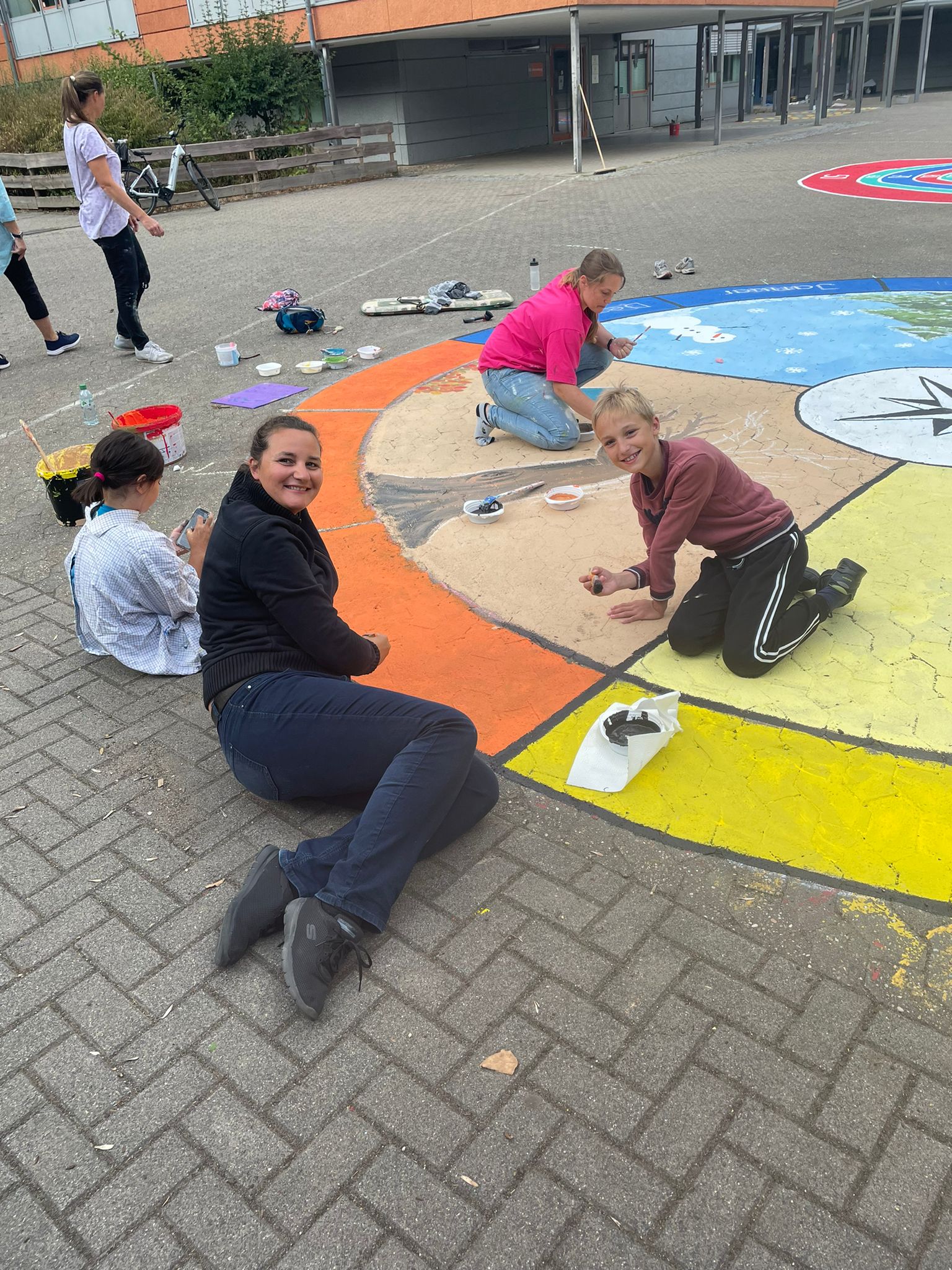 Mit Pinsel und Farbe haben wir eine wunderbare Verwandlung geschaffen. Dank des ehrenamtlichen Engagements unserer Eltern und der großzügigen Unterstützung des Fördervereins erstrahlt unser Schulhof in neuem Glanz. 🌈🖌️✨